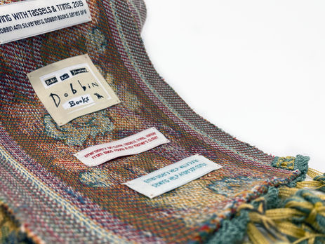 Living with Tassels & Trims, 2019 / Unique in a series of 6 / Embroidery on cloth, tassels, trims, hanger, clothing, book cover parts, pen nibs, beads & baubles